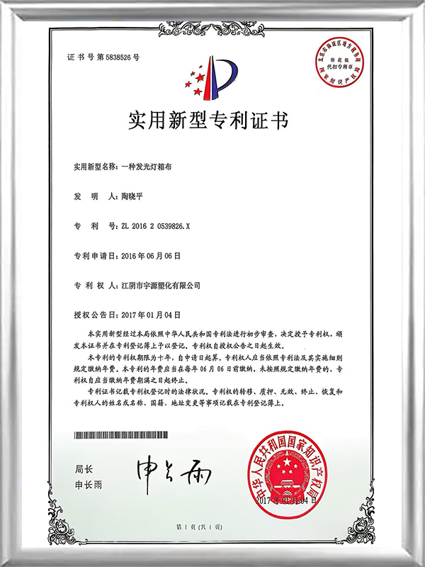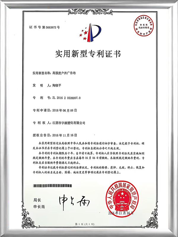 Nos produits phares de la marque « YUYUAN » —bannière flexible en PVC, bâche et bannière enduite— atteignent une capacité de production annuelle de 300 millions de mètres carrés. Réputées pour nos couleurs constantes, notre absorption d'encre exceptionnelle et nos performances anti-âge supérieures, nos bannières sont largement utilisées dans la publicité et les applications de matériaux flexibles et ont acquis une large reconnaissance sur le marché.